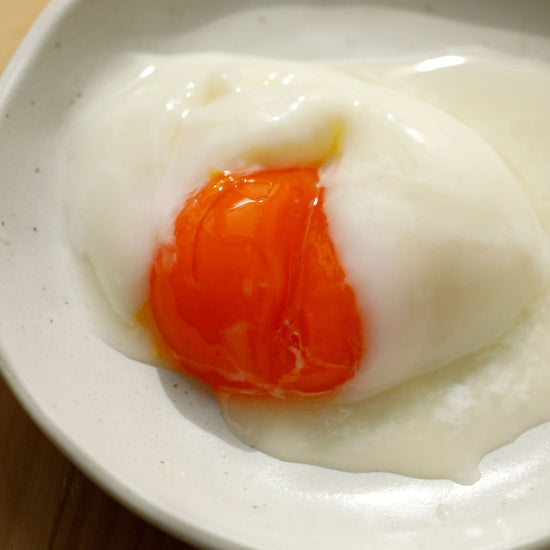 天美卵より少し小振りの「若たまご」を低温でじっくりと蒸し上げ、白身はつるんとゼリー状、黄身はトロッとした絶妙な食感に仕上げました。