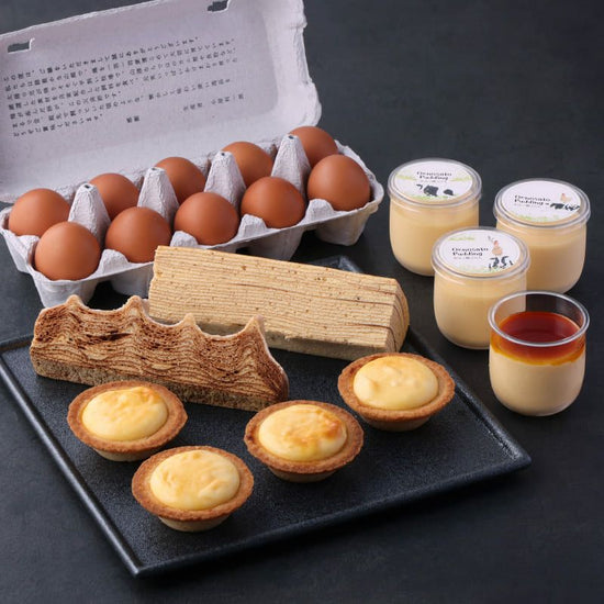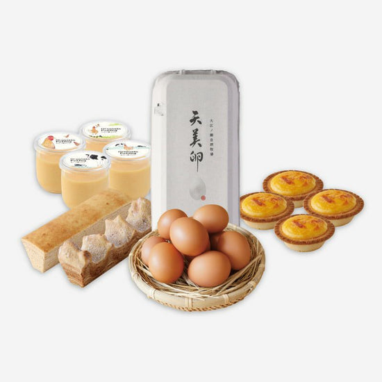 内容量 | 天美卵MSサイズ10個 スティックバウム(大江ノ郷バウムスティック、八頭ばうむ木魂(各長さ約15cm)各1本)1箱 大江ノ郷タルト(直径約7cm)4個 大江ノ郷ぷりん(約90g)4個 |