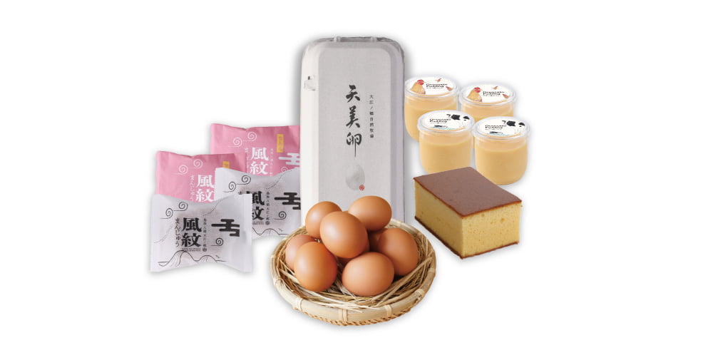 賞味期限 | 天美卵/生食14日間・加熱調理30日間(夏季は生食10日間・加熱調理30日間)、風紋まんじゅう/7日間、風紋まんじゅう芋あん/7日間、大江ノ郷熟成かすてら/14日間、大江ノ郷ぷりん/6日間 ※賞味期限および消費期限はすべて発送日を含めた日数 |