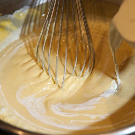 さらにその上から、和栗ペースト入りのチーズクリームを注ぎ入れます。